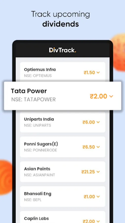 DivTrack is a powerful mobile app designed to provide real-time information on upcoming Indian dividend stocks listed on NSE/BSE. Stay ahead of the market and make informed investment decisions with ease. With DivTrack, you can access comprehensive details such as company name, dividend amount, dividend yield, ex-dividend date, and current market price.