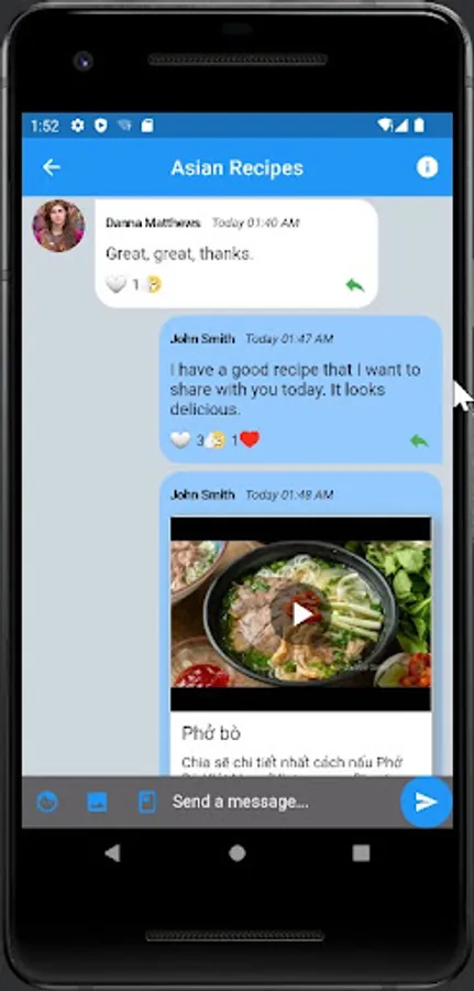 Tạo các cuộc trò chuyện riêng tư và công khai để chia sẻ công thức nấu ăn, khoảnh khắc với bạn bè và gia đình của bạn.