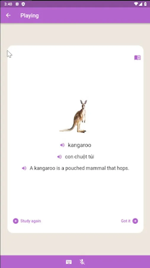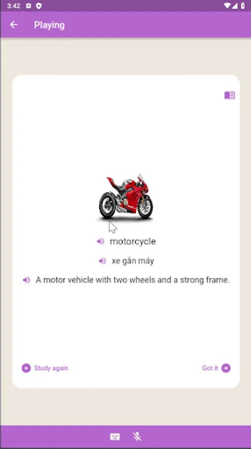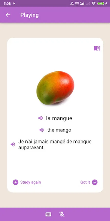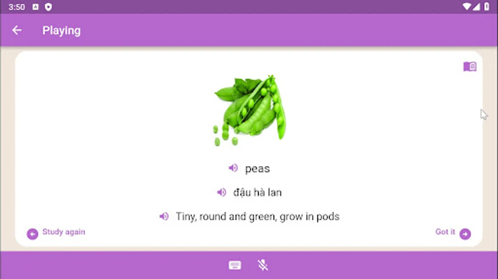 Review by listening to your cards and practice your pronunciation by answering with speech to text feature.