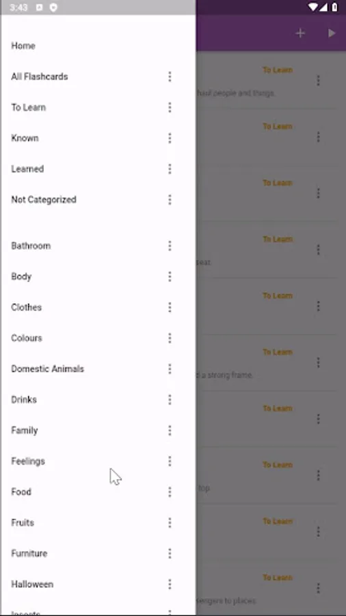 eFlashcards is an app that will help you to learn or improve vocabulary with flashcards.