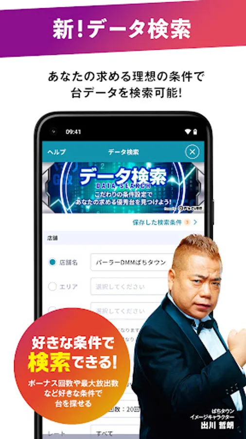 ・"Data search" that allows you to search for machines according to your favorite conditions, such as the number of hits and the maximum number of releases