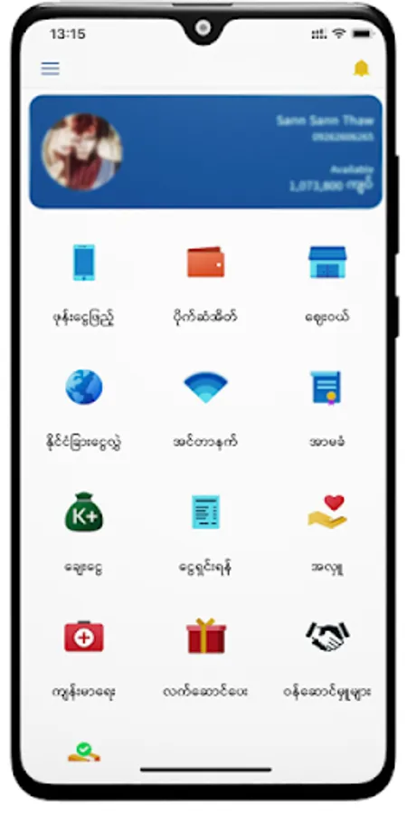 • Transfer your savings in Digital Mobile Money wallet directly to your bank accounts (CB, KBZ, AYA, AGD, UAB)