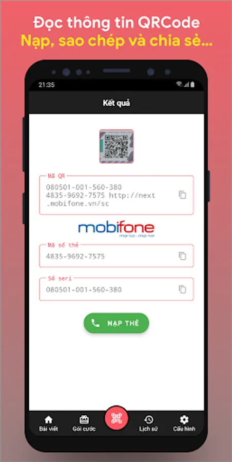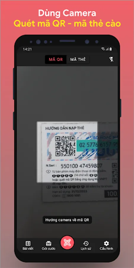 Recharge scratch cards - QRCode is an application that helps you recharge your phone quickly and conveniently.