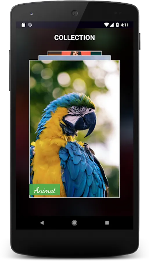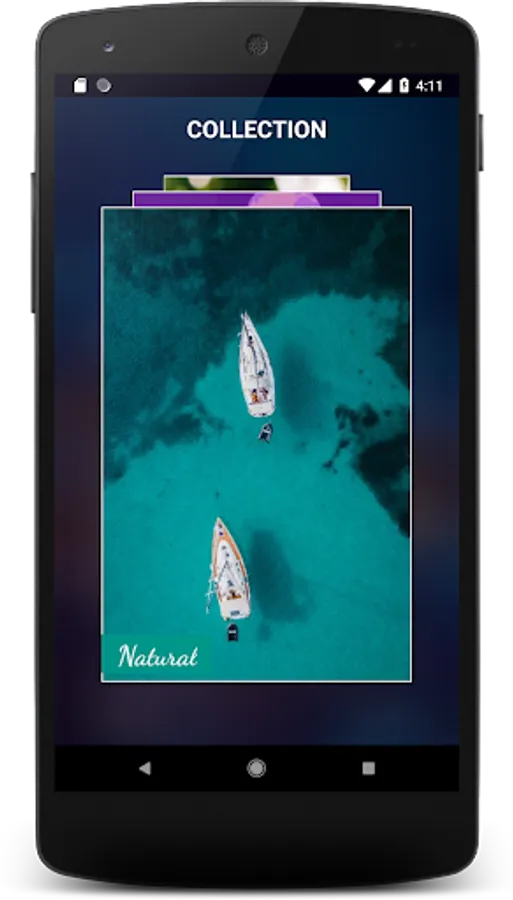 ► Sorting images by collections makes it easy for users to select their favorite collection. Users swipe the card to select collection.
