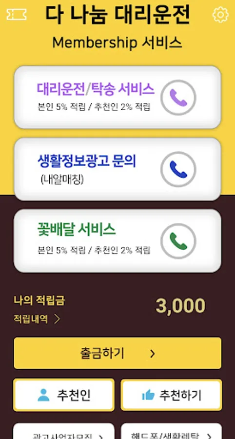 ☞ Cash withdrawal if the total amount of flower delivery, surrogate driving, and vehicle consignment is 10,000 won or more
