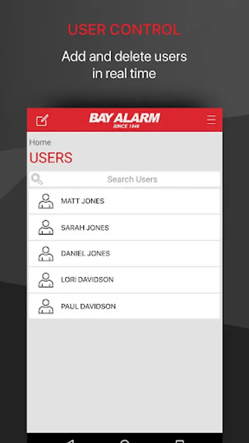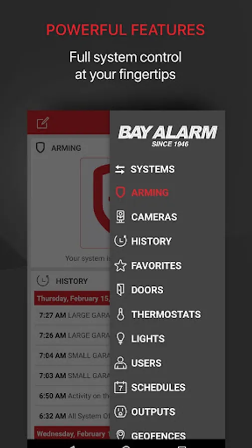 The Bay Alarm App offers the following features:
