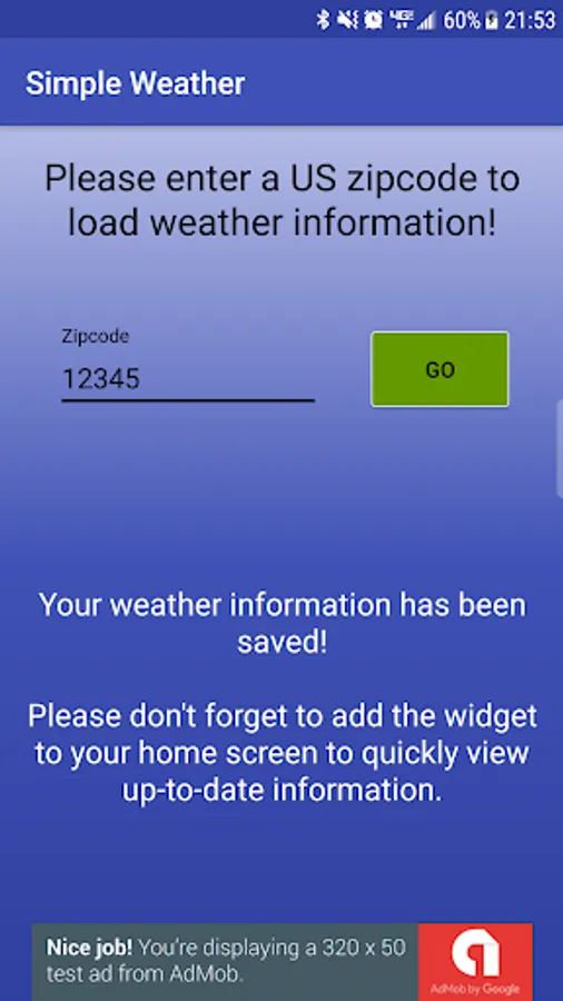 Simple Weather provides a basic interface for the user to enter a zip code of their choice and maintain up-to-date weather information of that location.