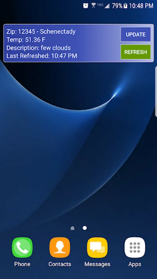 With the addition of a home screen widget, you no longer need to open an app to see the current weather. The widget will show you the information you need quickly and accurately. On its own, the widget will update every half hour, but also offers a simple update option - allowing the user to manually update the widget on command.