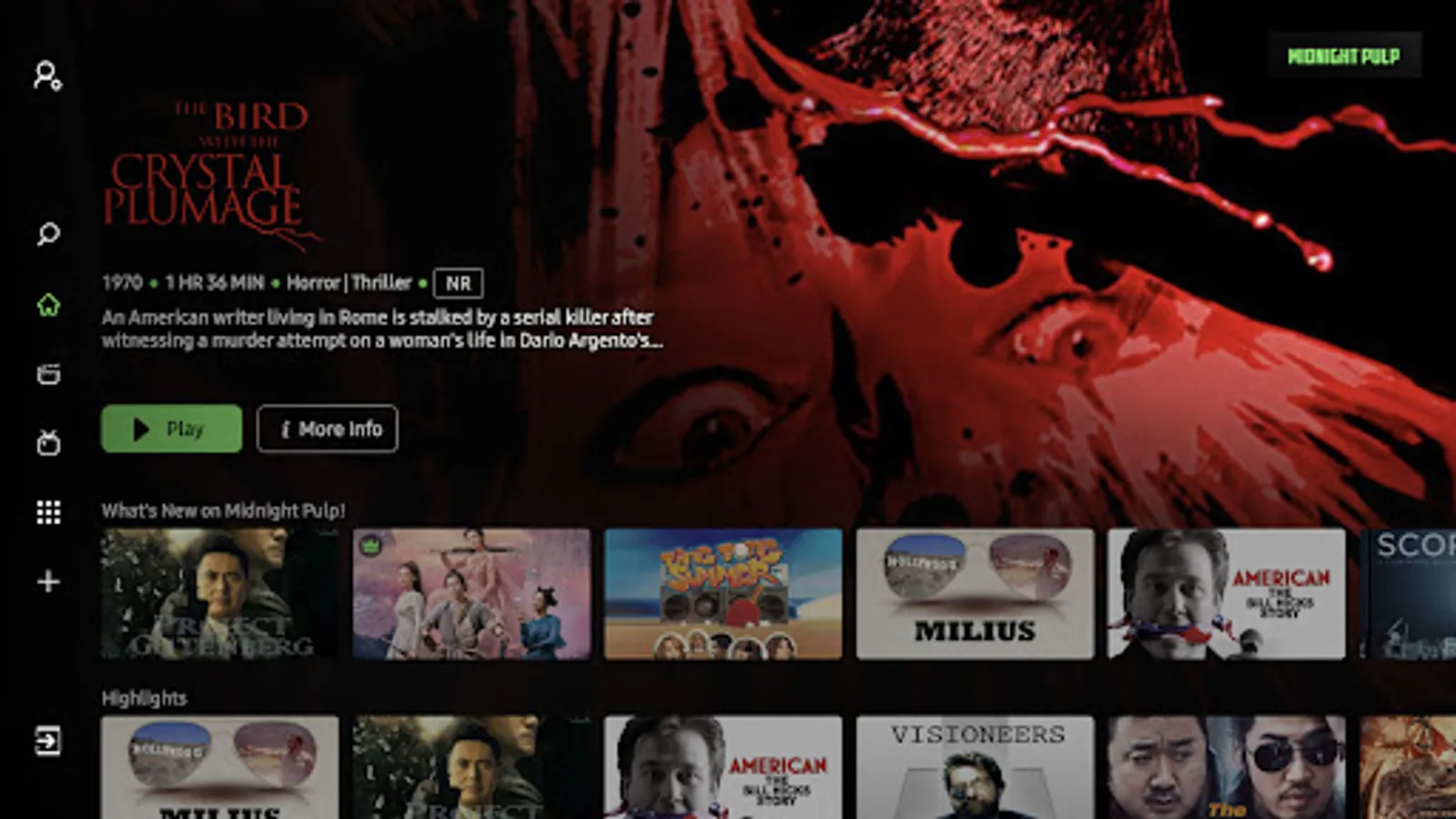 The perfect streaming channel for all things strange! Midnight Pulp offers the best cult movies and shows from all over the world.