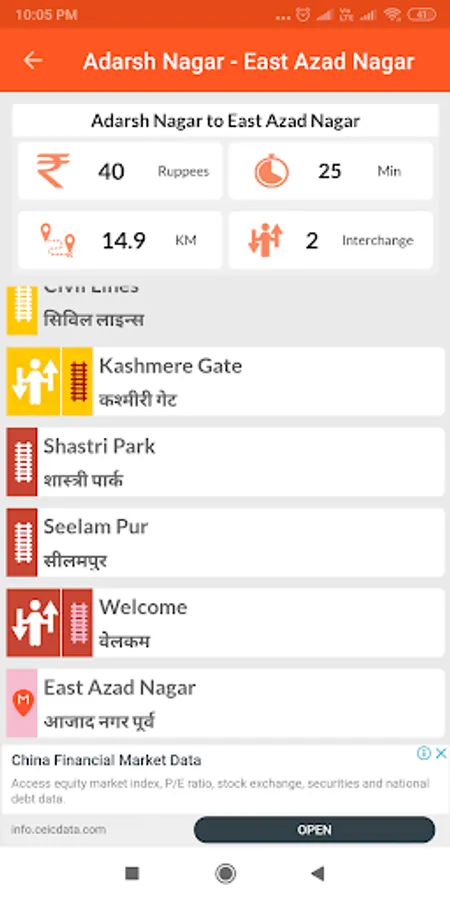 Route Between Stations- Selecting the source and destination stations will display Fares, Distance, station info , change train over station and the route map