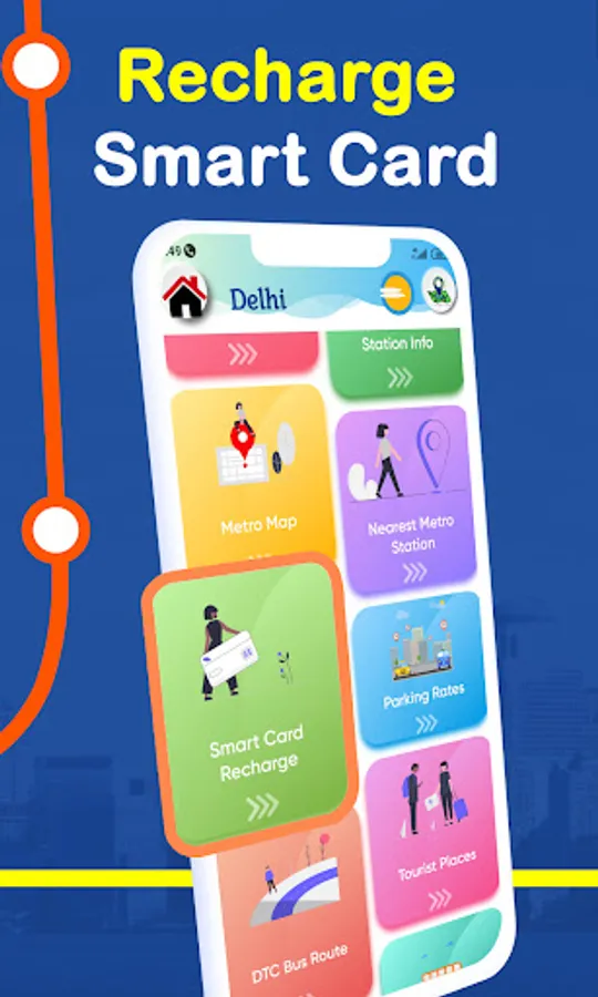 Get end to end information for Delhi metro, including Metro routes, fares, bus feeder services and Map of Delhi Metro, parking, tourist destinations around different stations, Gates, Smart card recharge and much more.