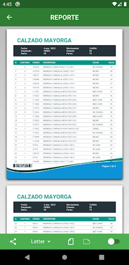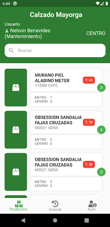 Tool for loading, unloading, transfers and pre-purchase of Calzado Mayorga inventory
