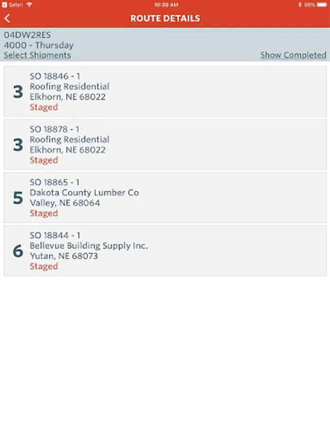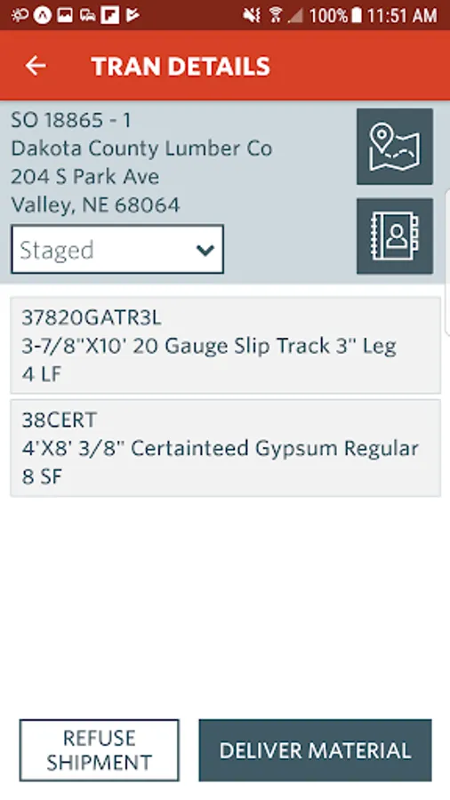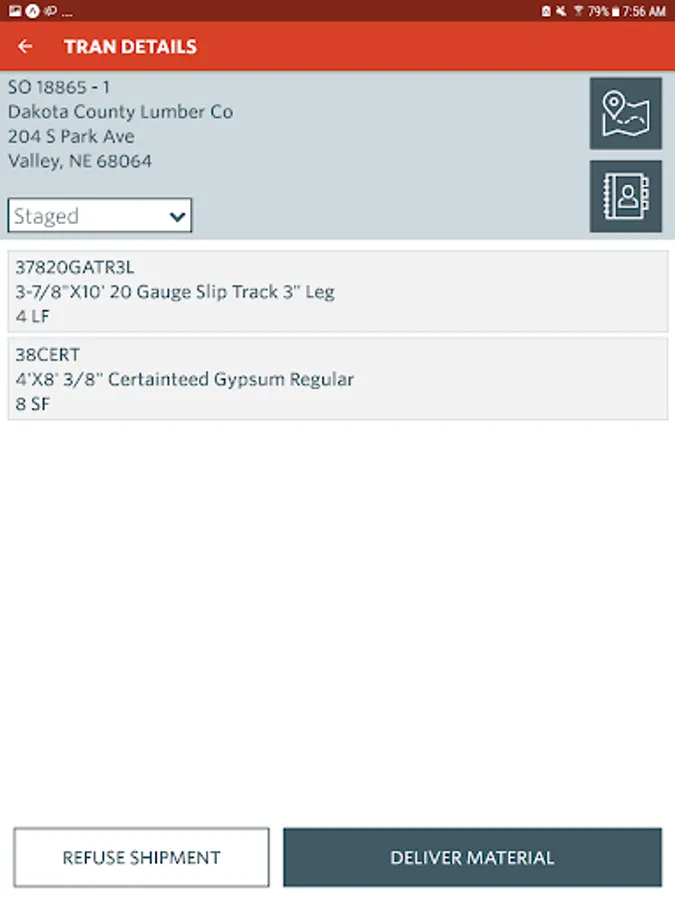 Get real-time order updates from your delivery drivers and capture proof of delivery in the field. View a list of shipments to be delivered for the route, or scan the transaction barcode to quickly access the shipment. For each shipment, get turn-by-turn directions, call, text or email the customer, modify the delivered quantity and update the status of the shipment. Confirm delivery by capturing a signature or taking pictures of the jobsite and/or delivered material. Agility v5.2.5 or higher is required. Contact your system manager for more information.