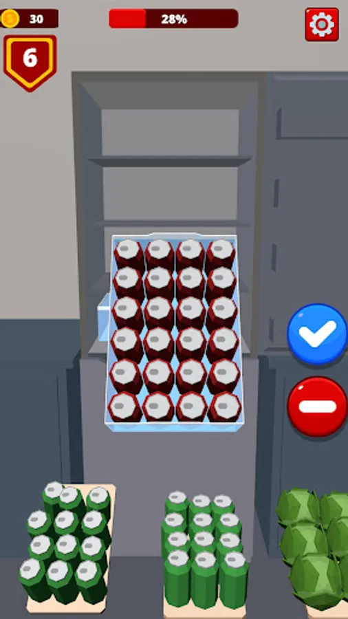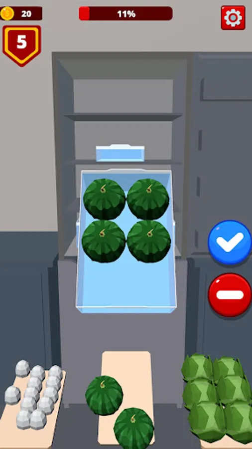 ● Pass the levels of «Fill the fridge» organizing game and unlock new 3d product: vegetables, fruits and various types of soda and delicious cakes are waiting for you inside.
