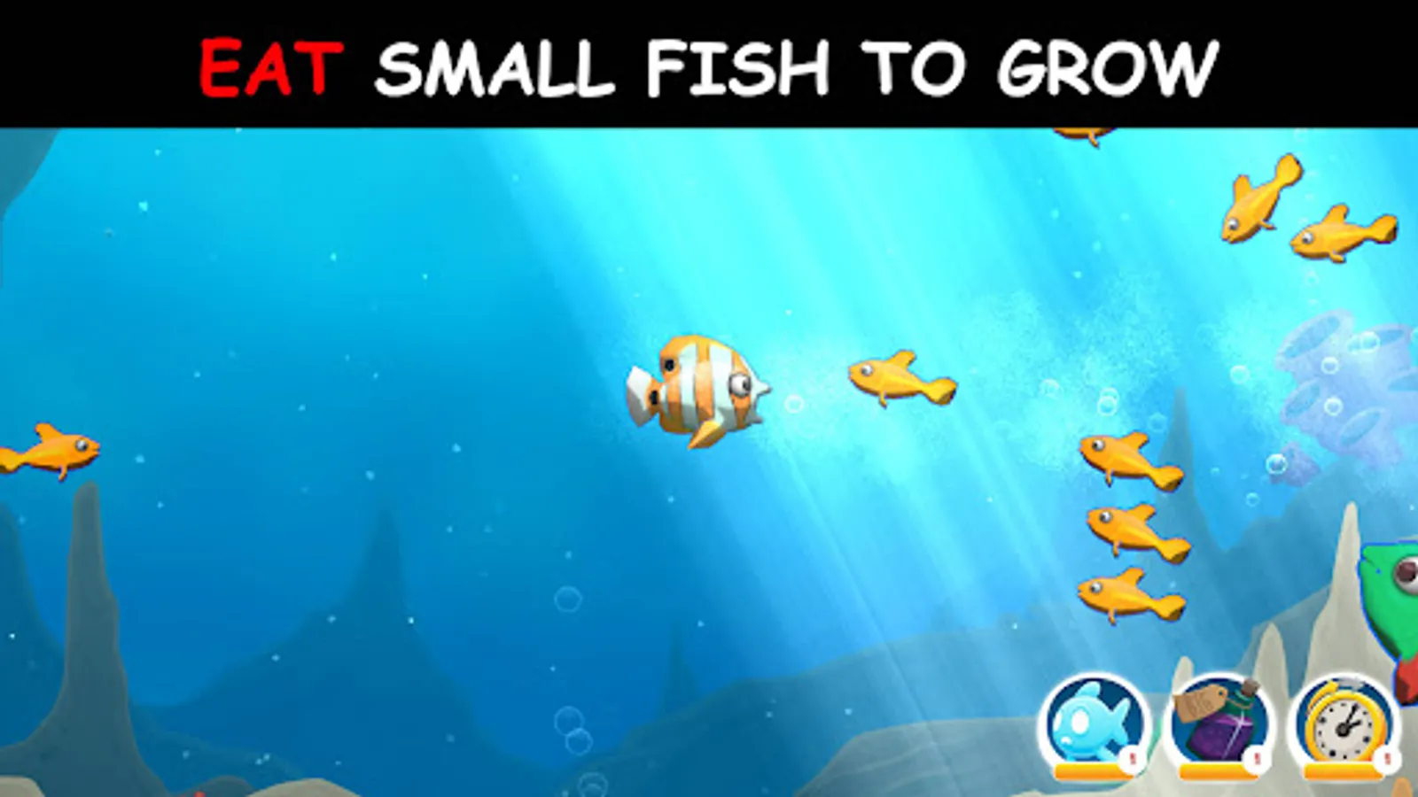 ✔ Track the growth of fish. Eat all the little fish around and the player's size increases. The growth bar at the top of the screen will indicate when you will be ready to eat larger fish.