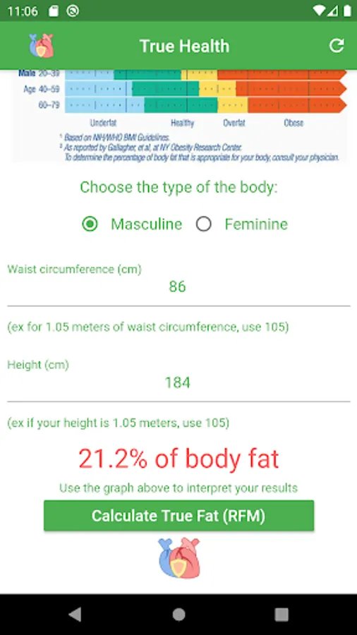 RFM is a more accurate indicator than BMI. For example, when using BMI a body builder with low fat could be described as obese with high heart disease risk. It does not happen when using RFM.
