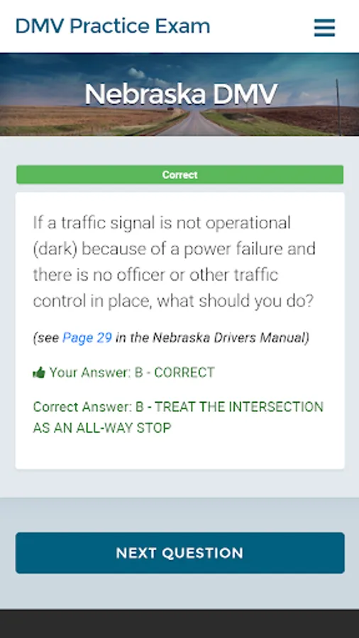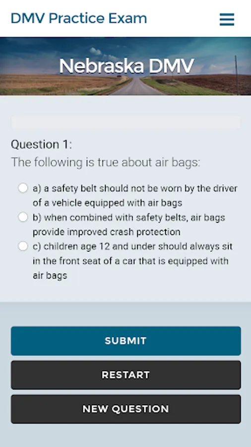 Examen simulator for permit. DMV Nebraska Practice Tests simulator for free.
