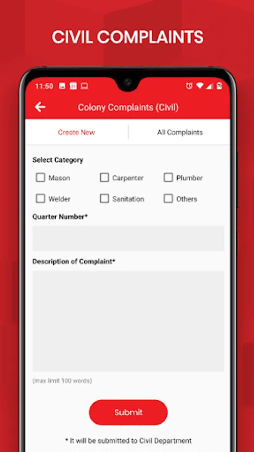 This app is for the benefit of employees at PLW patiala (Formerly DMW, Patiala) wherein the employees can raise complaints in departments of civil, electrical and personnel. The complaints raised can be tracked w.r.t the date of complaint issued, resolved, and reassigned. Employees can also track as to which artisan is going to work on their complaint. The app also provides provision for the employees to view, download and share their salary details, PF, form 16 and ACR. The app provides a provision to change and reset password if the same has been forgotten.