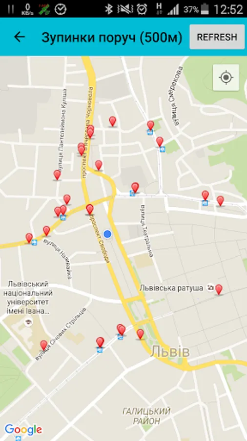 Information is loaded online for each type of public transport in Lviv according to their GPS position.