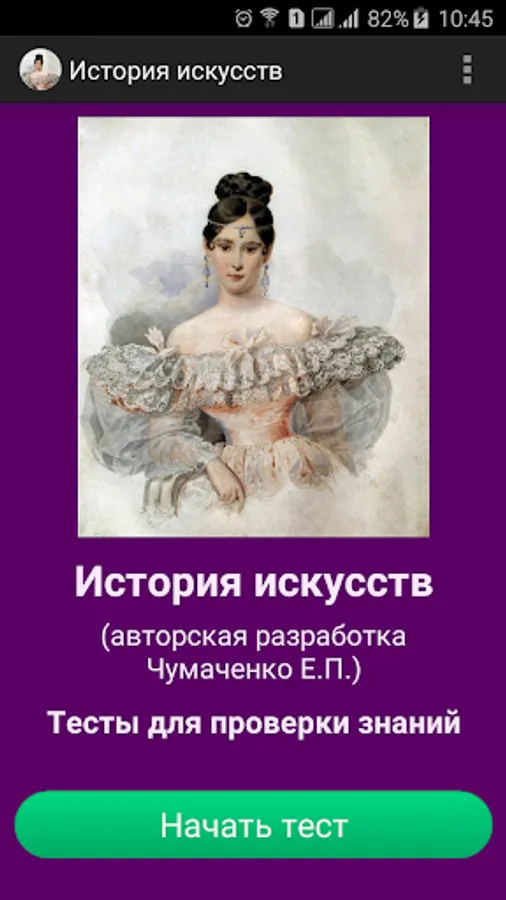 Knowledge tests for the discipline "History of Art" for students of university of III-IV level of accreditation. This specialized tests, namely by taking into account the "History of Art" program. These tests include more than 150 paintings, painted by Russian artists XVIII and XIX centuries, the Impressionists, the Wanderers, Western European artists of the Renaissance period, XVIII, XIX, and XX centuries. You can guess the author's picture on the proposed reproductions, guess the name of the picture of the number of proposed options. Enjoy watching!