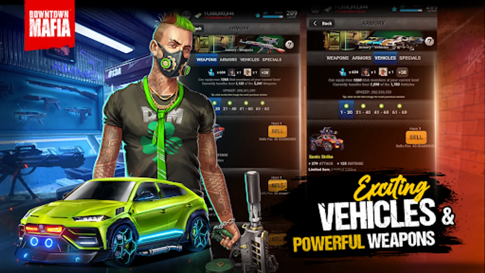 ★ Recruit your mob members, BUY new WEAPONS, VEHICLES, ARMOURS and SPECIAL items to arm up your team.