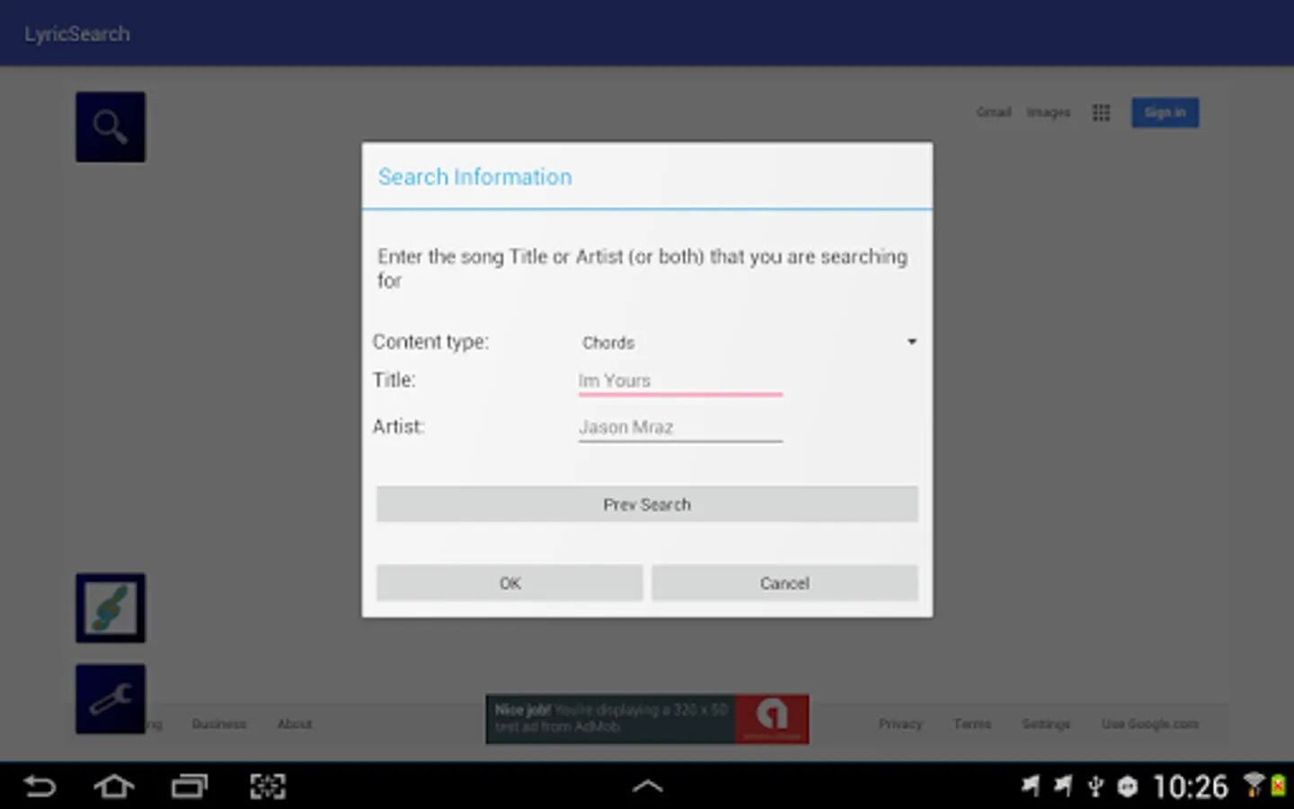 Lyric Search is a web browser used to search for lyrics, tab and chord charts from online sources.
