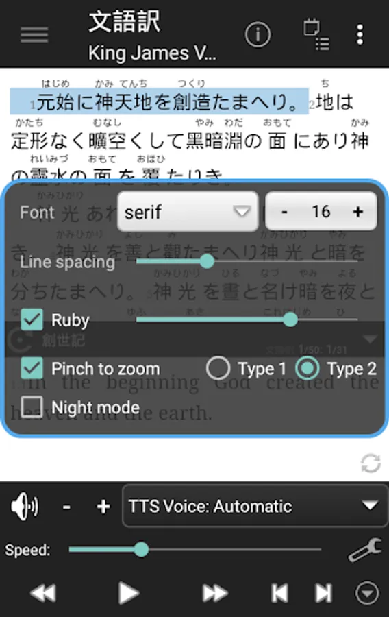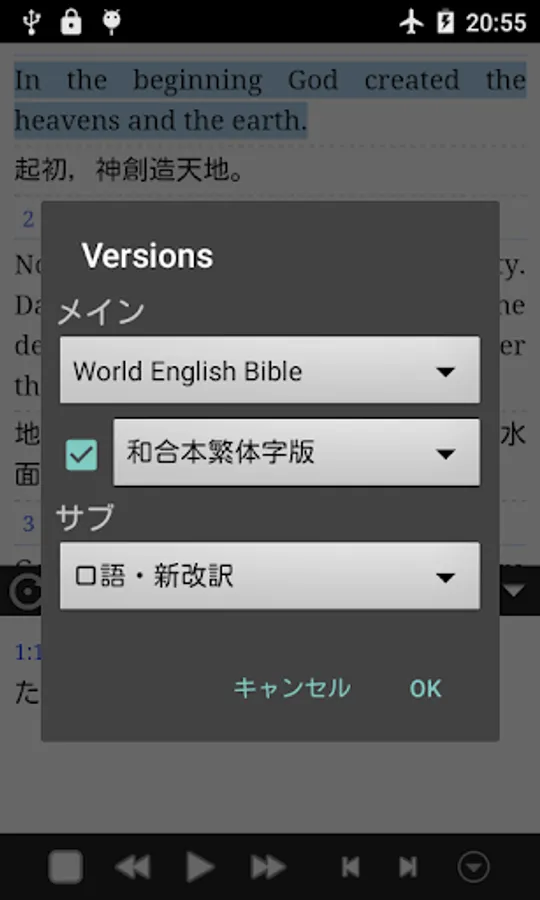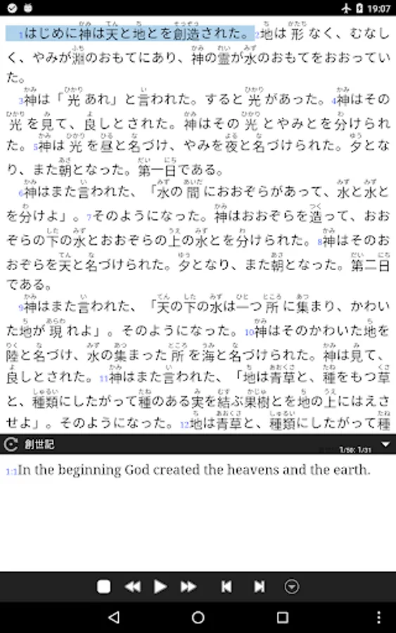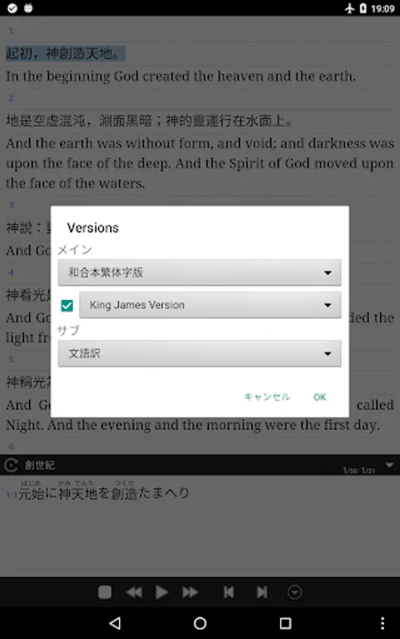 • Displaying the sub bible's verse corresponding with the main bible's verse simultaneously.
