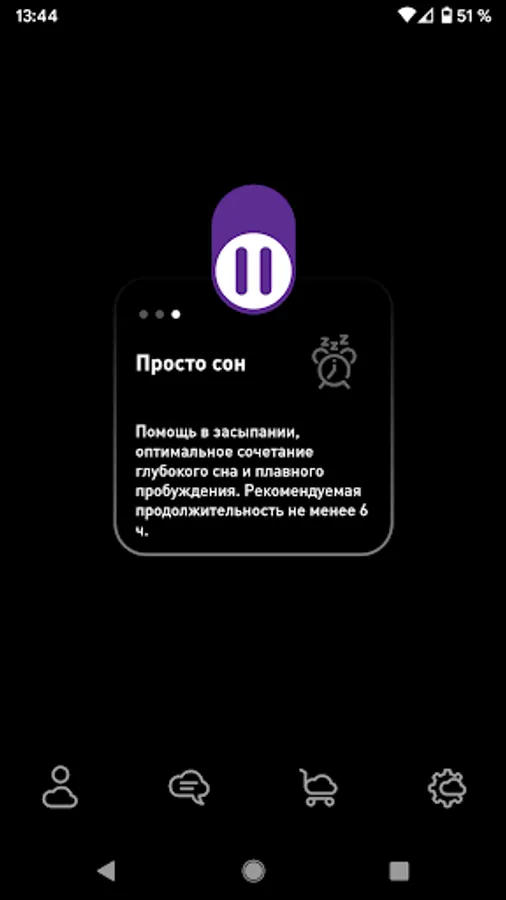 Without using the Deep Up application, the duration of the Deep Cube sleep program is 9 hours. Setting the wake-up time will qualitatively change your experience of using the Cube. The best effect on awakening is achieved when the set of the maximum frequency of impulses of the Dip Cube coincides with your awakening time.