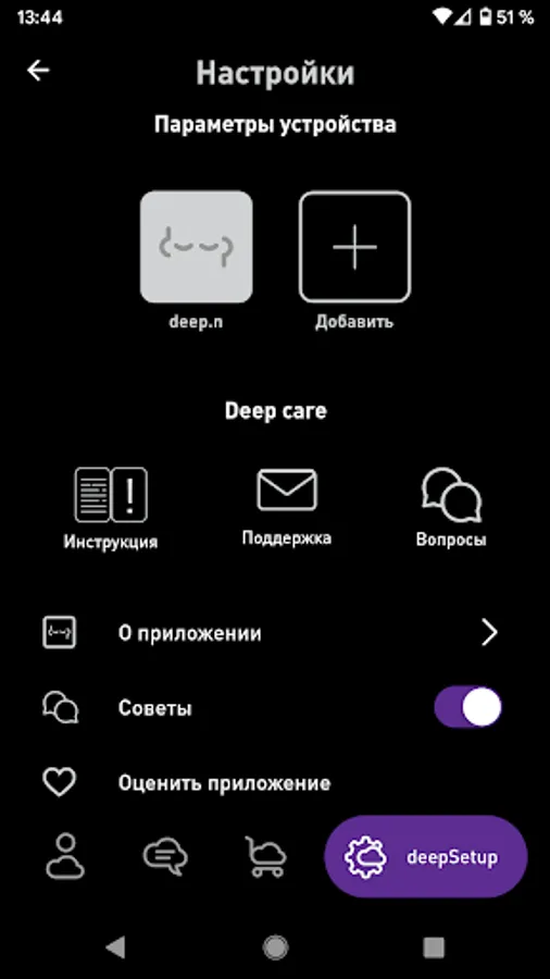 The application is designed to control two models of Sleep Cubes: deep.n and deep.r ("Dip-en" and "Deep-er").