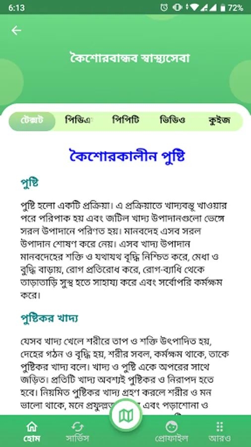 This mobile application is mainly for the Adolescents of Bangladesh to find out there any kind of queries and awareness about physical and mental. Teachers, Students, Parents, Health Service Provider can also use this application. The app will help in education purpose so that the adolescents of Bangladesh can learn about courses, guidelines and policies for them. This app consists of following features:
