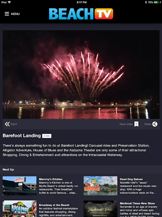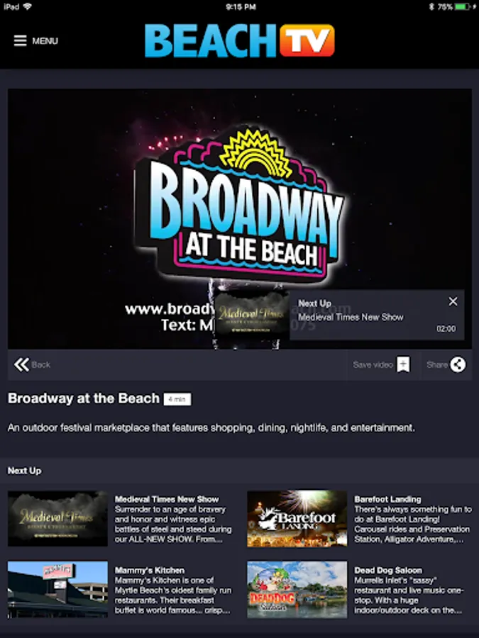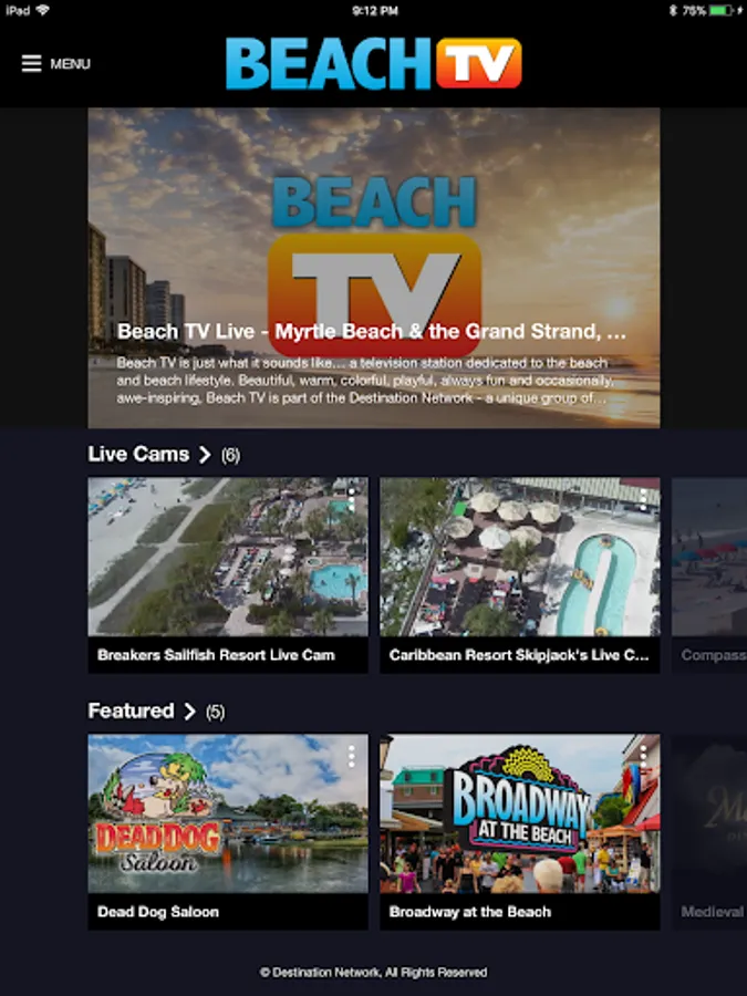 Beach TV is just what it sounds like… a television station dedicated to the beach and beach lifestyle. Beautiful, warm, colorful, playful, always fun and occasionally, awe-inspiring, Beach TV is part of the Destination Network - a unique group of Visitor Information stations, providing visitors with facts and insider info they need to make the most of their beach vacations, and serving as a trusted advisor to locals on leisure time indulgences. Live 24/7 with award-winning restaurant reviews, special event updates, nightlife and entertainment reviews, sports, arts, culture and rare insider information on up and coming trends. Beach TV is 100% Good News – no other station offers this kind of hyper-local insight to Myrtle Beach, Pawleys Island & the Grand Strand beaches… all in high definition, produced by some of the most talented producers in the field. Beach TV is filled with gorgeous visuals, colorful and witty reporting by real people who actually live and play on the beach!
