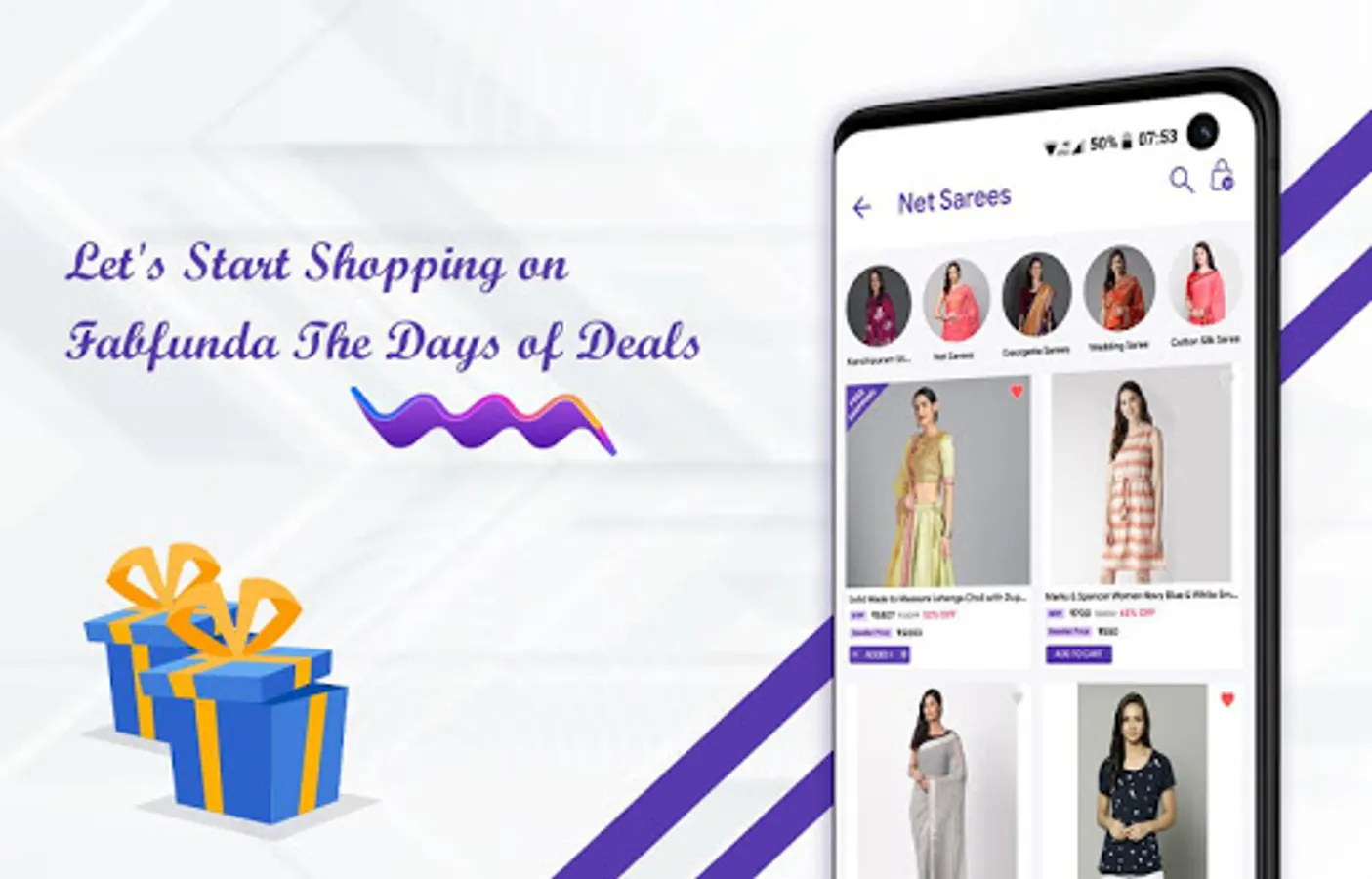 Buy latest fashionable dresses for ladies from Fab Funda Surat. You can check all updated features and functionalities on this app for buy online sarees, kurtis, dress material and lehenga cholis with COD and free shipping in India.