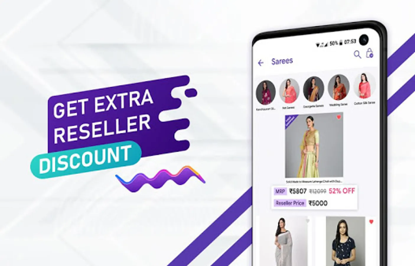 All the products are available at wholesale price. We provide all India shipping and COD at economic price. You can send order us from this app and get best discounted benefits for online prepaid orders. If you are resellers of Sarees, Kurtis and ethnic wear. Just Sign up and we will provide you discounted rate for resell. Buy products from us and get best rate for shipping with GST invoice of all products.