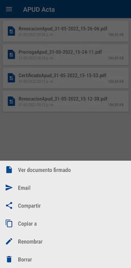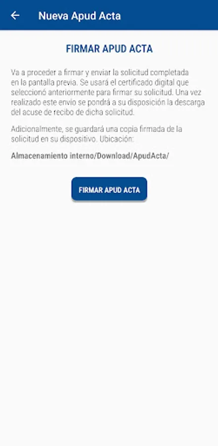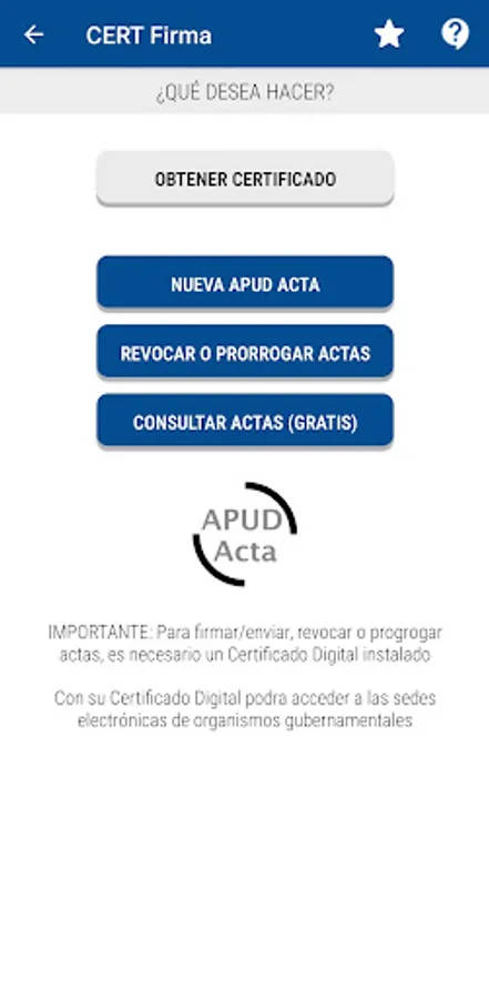 Likewise, the app allows the easy export of APUD ACTA registration certificates issued by the electronic headquarters of the Ministry of Justice.