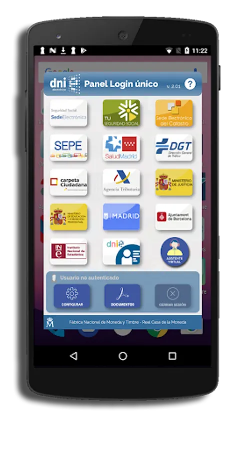 It is a single login Application, for access to multiple Administration services. The graphic interface is a specific widget to facilitate the use of the DNIe.