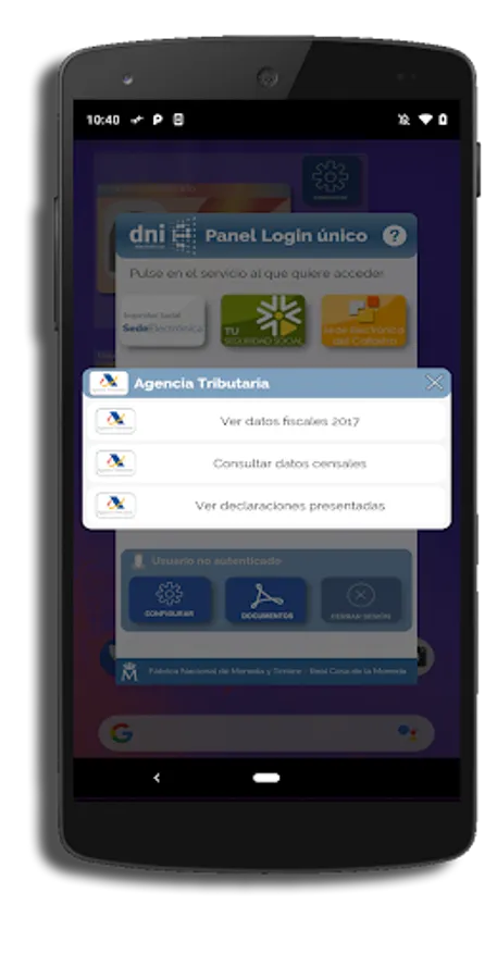 This application allows access to a multitude of services from different Administration bodies through an electronic DNI, with a single login. In this way you can, with a single presentation of the PIN, download data such as work history, consultation of driving license points, tax information, etc.