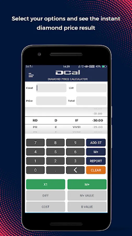 Calculate the price of diamond with a touch of a finger with Dcal!