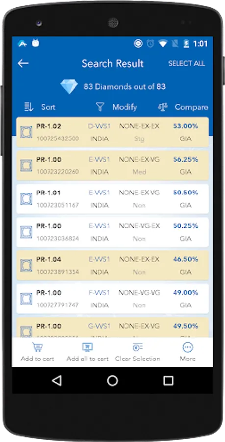 The App gives a fantastic opportunity to compare, calculate, filter, sort & personalize the diamond list as per your requirement.
