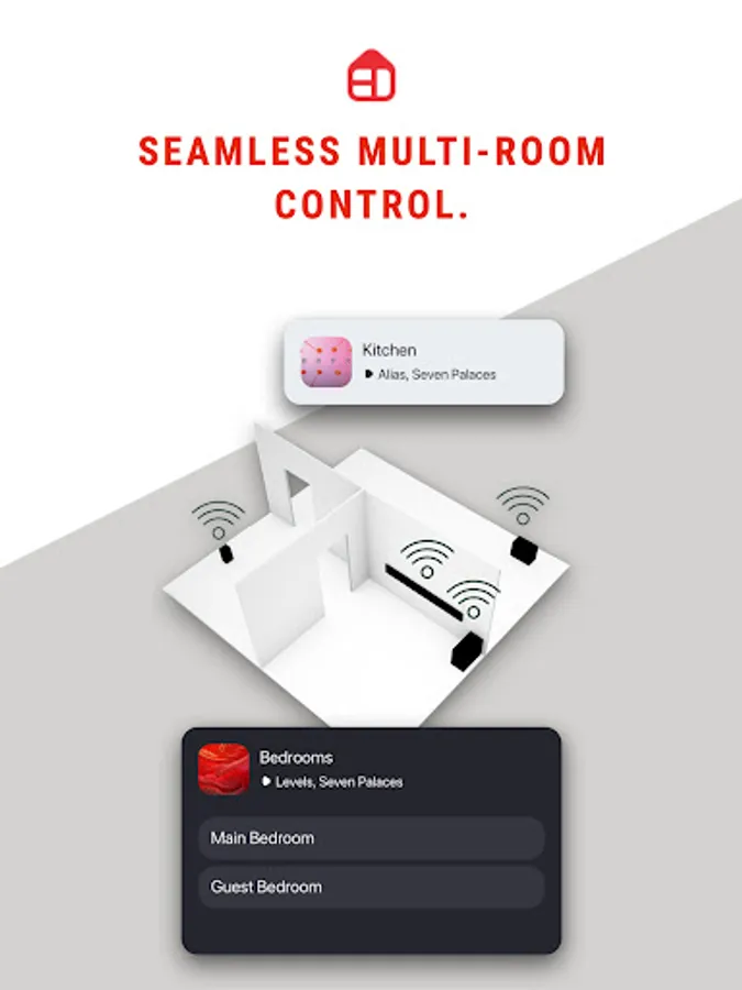 • True multi-room audio - play different songs in different rooms or the same song in multiple rooms