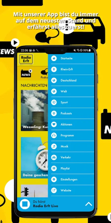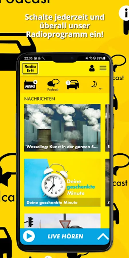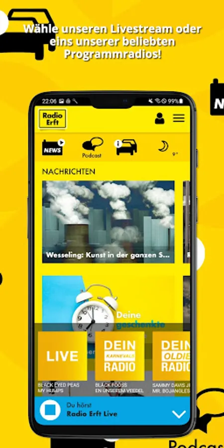 With our app you always stay up to date. We bring all information from the Rhein-Erft district to your smartphone. Current news, information about the program, events and promotions. Listen to the program via our livestream or select one of our channels.