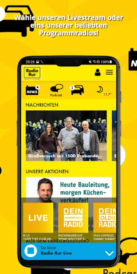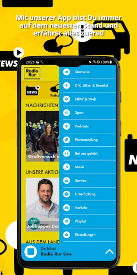 With our app you always stay up to date. We bring all information from Düren, Jülich and the Rureifel to your smartphone. Current news, information about the program, events and promotions. Listen to the program via our livestream or select one of our channels.