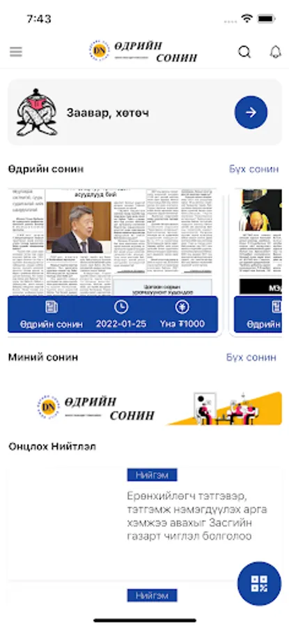 The best newspaper of 2000, 2002, 2003, 2005, 2010, 2013, and the human rights newspaper of 2002. In Mongolia, only "Udriin sonin" can tell the truth. "Daily newspaper" with you every morning.