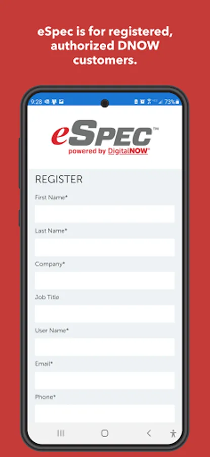 The eSpec Configurator is for registered DistributionNOW account holders. Please register to use eSpec, and the DistributionNOW sales team will contact you to confirm your account.