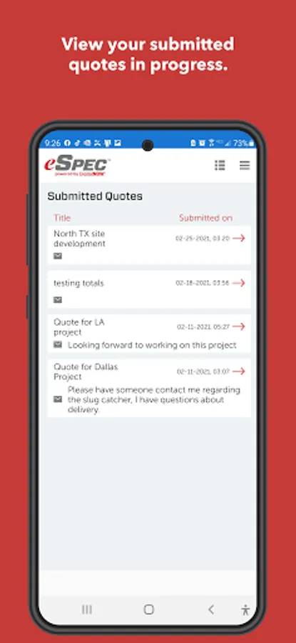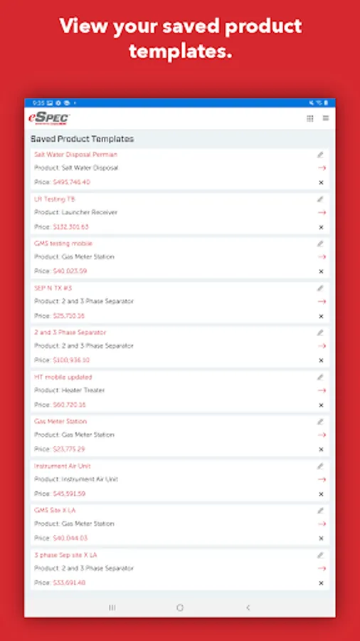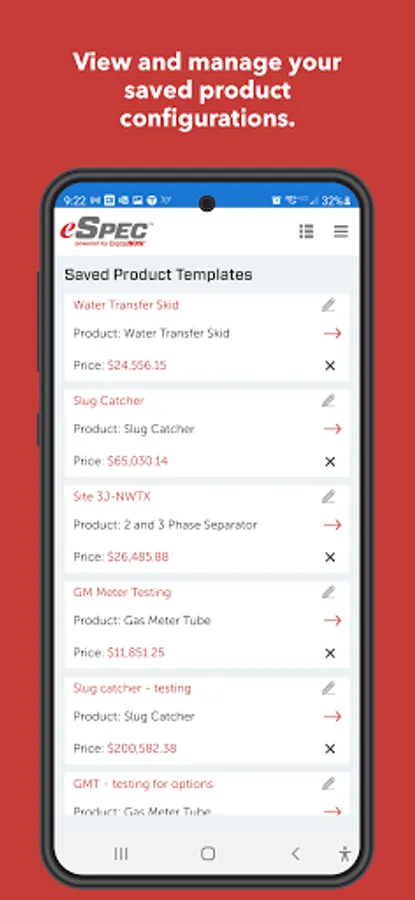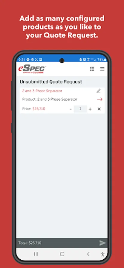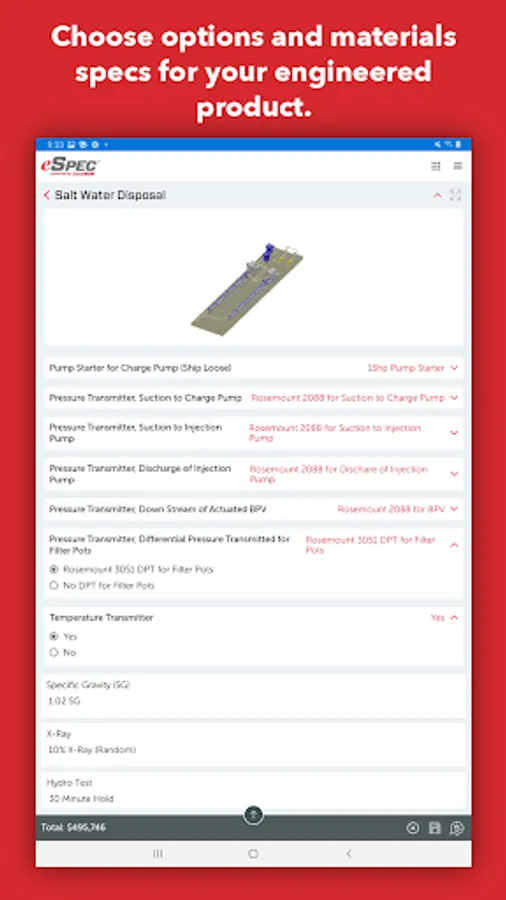 After you finish configuring your equipment, eSpec generates a complete technical quote with estimated budgetary pricing.
