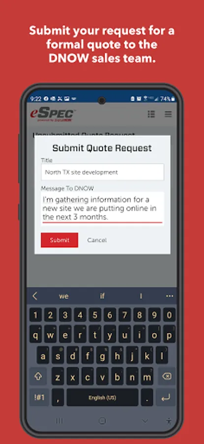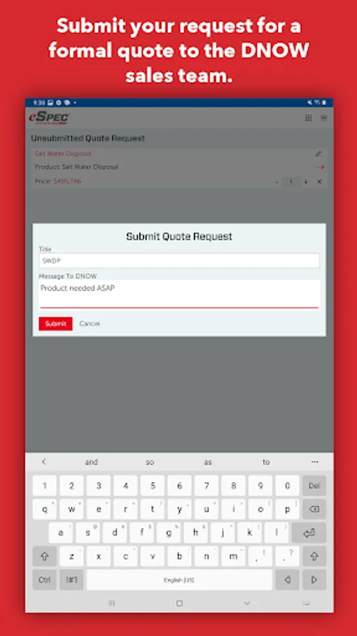 Configure multiple engineered packages for your project and submit the entire RFQ to DNOW engineers with just one click.