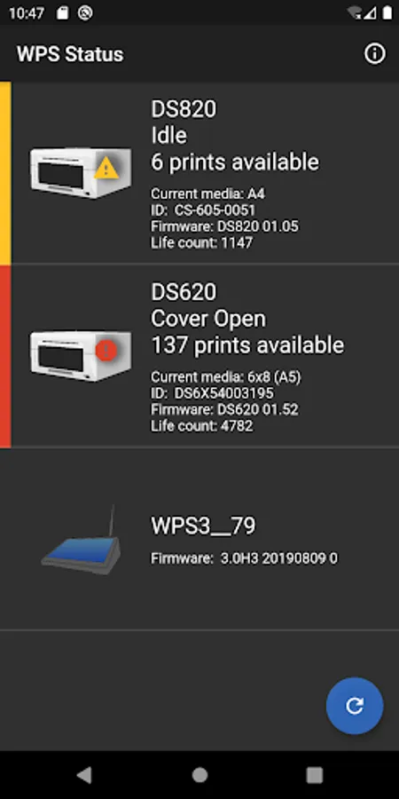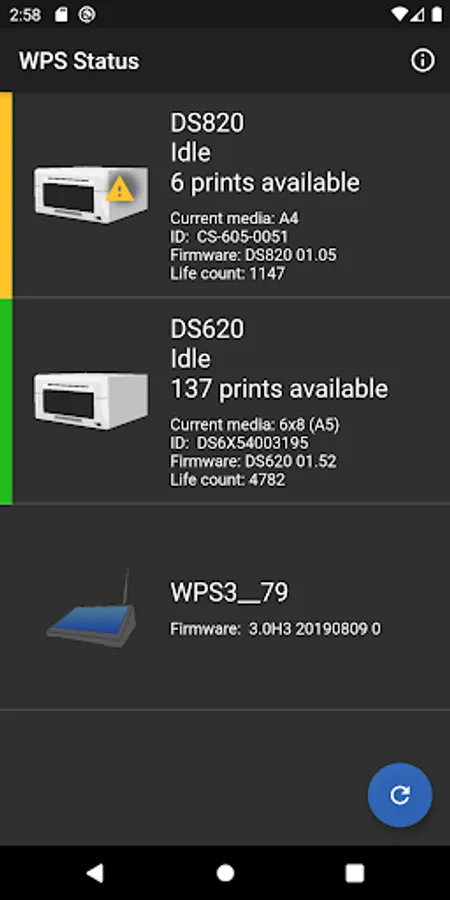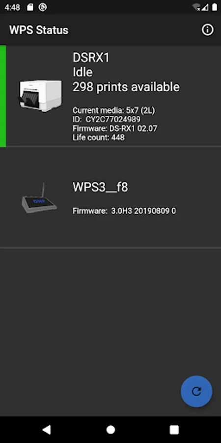 Use the 'WPS Status' mobile application to see the status of DNP printers and the DNP Wireless Print Server at your important photo shoot event.