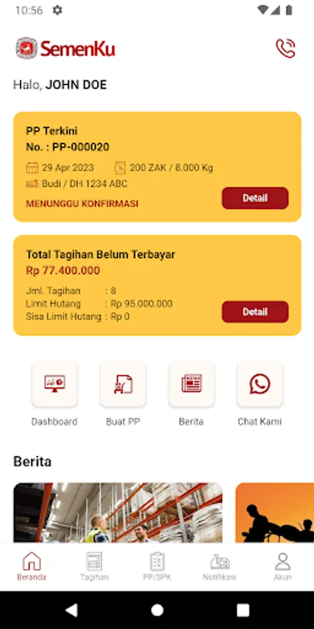 SemenKu Apps is perfect for users who need large amounts of sacks of cement and want to order in a practical and easily accessible way via the customer's smartphone. This application can help save time and effort in placing orders and monitor order status in real-time.