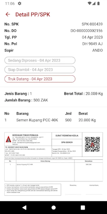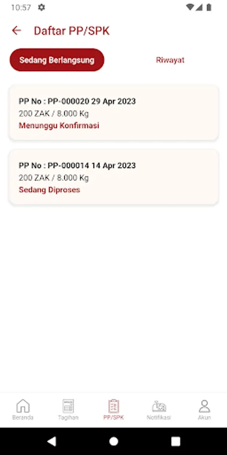 "SemenKu Apps" is a mobile application owned by PT. Berdikari Timur Perkasa which allows users to order sacks of Semen Kupang for the Kupang area and its surroundings through easy and practical Purchase Order (PO) orders. In addition, this application also provides information related to the process of picking up goods, such as order status and collection time