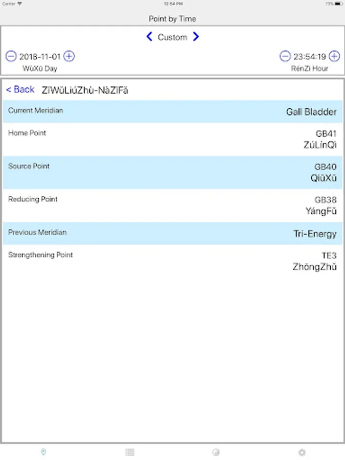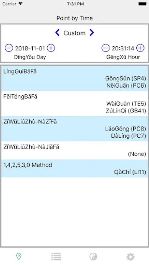 1. This software provides LingGuiBaFa, FeiTengBaFa, ZiWuLiuZhuNaZiFa and ZiWuLiuZhuNaJiaFa for chrono-acupuncture open points.