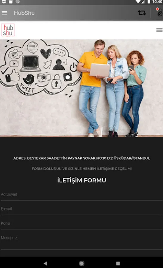The HUBSHU mobile app allows you to navigate HubShu Creative content, have easy access to our contact information, and retrieve and store information from us.